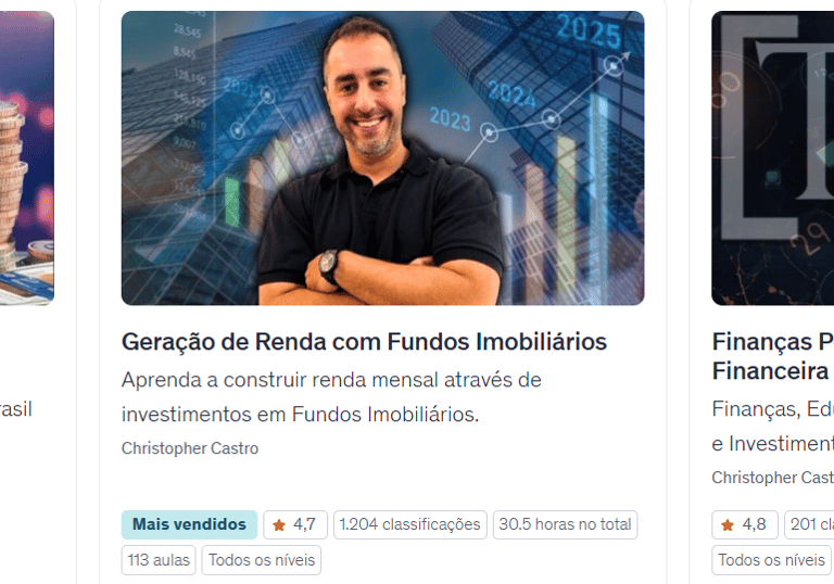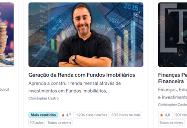 Este curso, constantemente atualizado com novas aulas, oferece uma formação completa voltada à geração de renda mensal por meio de Fundos Imobiliários, sem se limitar exclusivamente a essa classe de ativos.