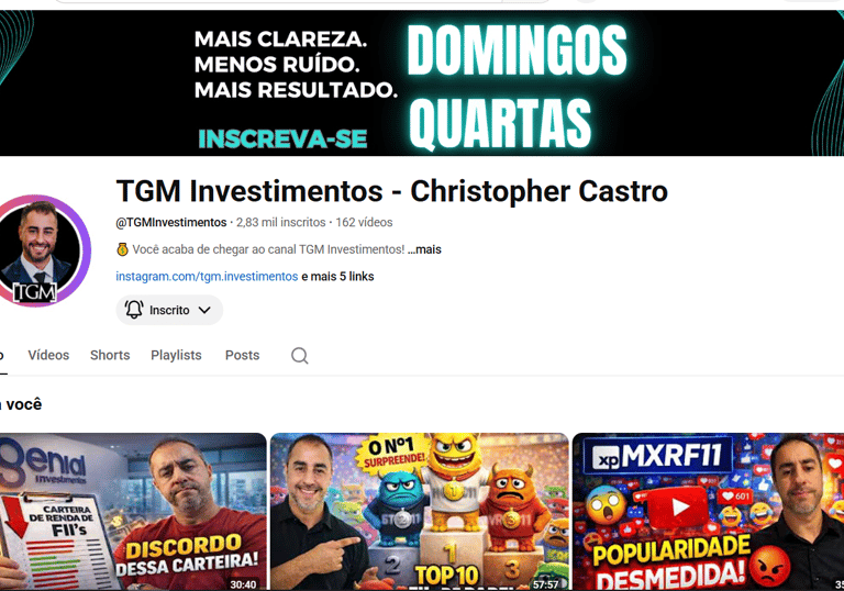 Através de redes como Youtube, Linkedin e Instagram faço a criação quase que diária de conteúdos sobre investimentos e educação financeira, mantendo uma proximidade muito boa com meus seguidores e inscritos e ensinando tudo que posso de forma totalmente gratuita para colaborar com a educação financeira de nosso país.